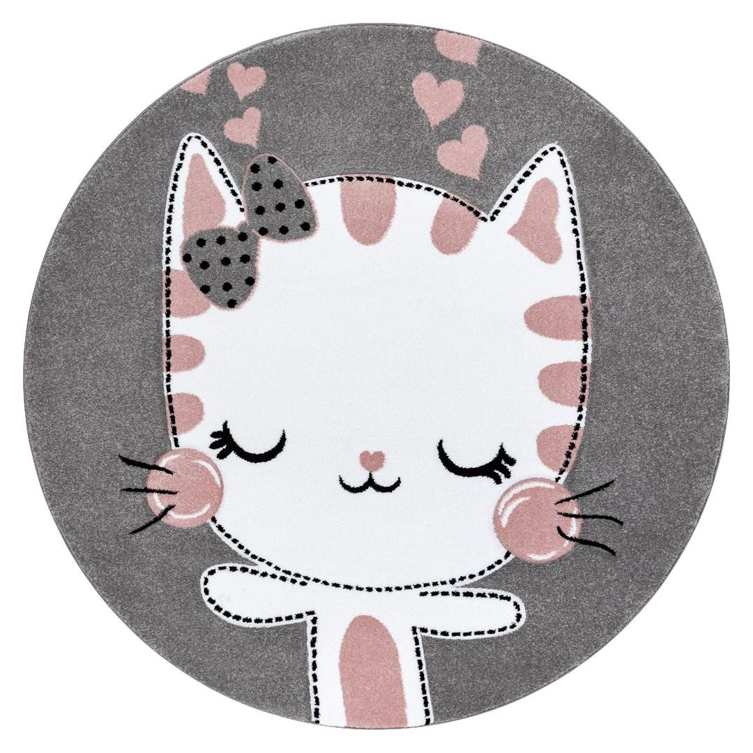 Kids Rund Børnetæppe Kat – Pink – 120×120 (Rund)